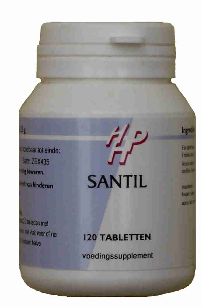 Santil ist ein Kräuterpräparat mit einer darmregulierenden und abführenden Wirkung dank Kräuter wie Trifala churna und Acorus calamus. Embelia ribes hat dabei eine anthelmintische und austreibende Wirkung. In der Praxis hat sich herausgestellt, daß Santil einen positiven Einfluß auf Colitis ulcerosa und intestinale Candidiasis ohne Durchfall hat. In der Behandlung von Colitis ulcerosa und Candidiasis mit auftretendem Durchfall soll Deparayur eingesetzt werden.